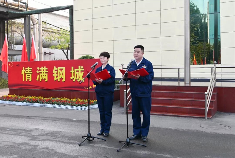 隨后,伴著悠揚激情的音樂,兩名職工共同朗誦了《情滿鋼城 禮贊國慶》,歌頌偉大祖國72年來取得的舉世矚目的輝煌成就,表達(dá)了對祖國母親最美好祝愿,以及全力奮戰(zhàn)金色十月,打贏生產(chǎn)經(jīng)營翻身仗、爭氣仗的堅定信心。