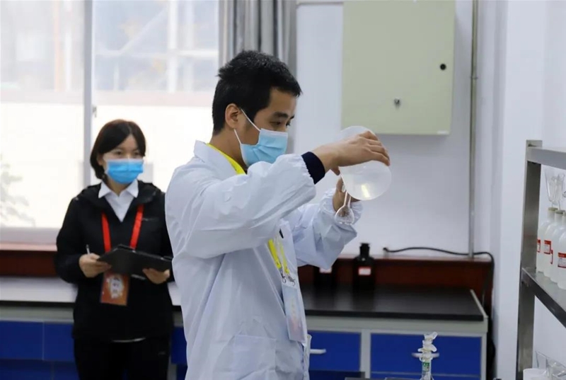 分析化驗(yàn)工的實(shí)操考核內(nèi)容包括EDTA標(biāo)準(zhǔn)溶液的配制和生鐵酸溶硅含量測(cè)定兩部分。整個(gè)過(guò)程中,選手們注意力高度集中,操作細(xì)節(jié)不容許絲毫大意,準(zhǔn)確的稱量、精確的藥品用量、嚴(yán)謹(jǐn)?shù)闹茦?、穩(wěn)如泰山的移液……各顯身手,展絕技,亮絕活。