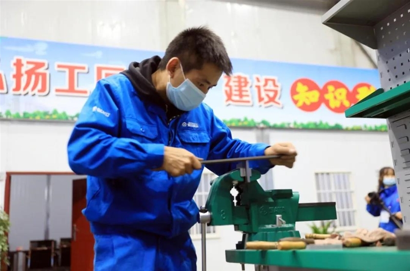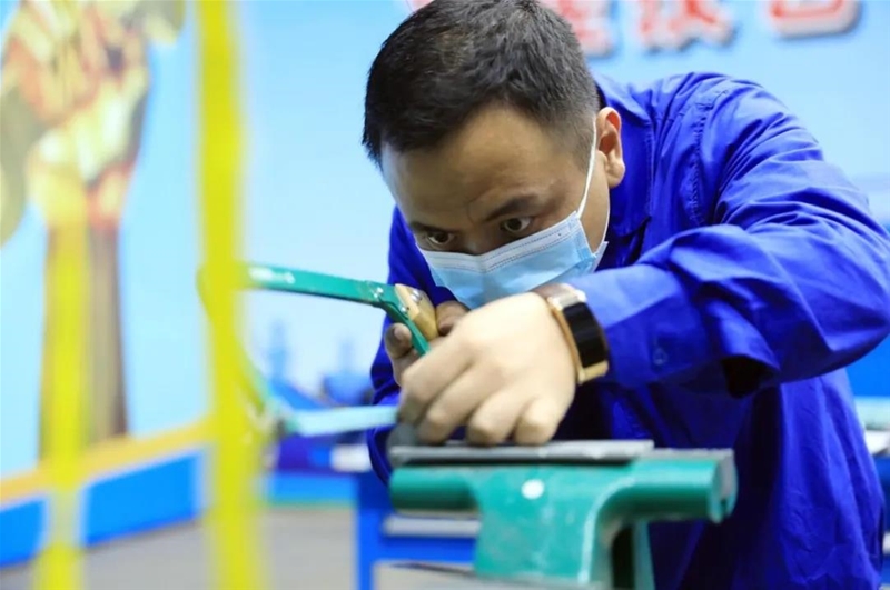 在維修鉗工培訓(xùn)基地,各參賽選手斗志昂揚(yáng)、躍躍欲試,紛紛拿起各自工具,仔細(xì)測(cè)量,精確切割,精心打磨,精雕細(xì)琢,一時(shí)間,搓、鋸、削、鉆各種聲音此起彼伏,合奏出一曲令人震撼的交響樂(lè)。