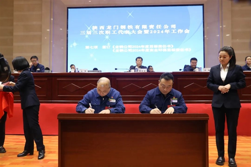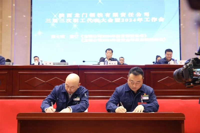 會上還傳達(dá)學(xué)習(xí)了陜煤集團(tuán)、陜鋼集團(tuán)三屆三次職代會暨2024年工作會精神,進(jìn)行了民主評議領(lǐng)導(dǎo)干部。書面審議并通過了龍鋼公司《2023年經(jīng)營業(yè)績完成情況報(bào)告》《2023年安全環(huán)保目標(biāo)責(zé)任完成情況報(bào)告》《2023年“三公經(jīng)費(fèi)”支出情況報(bào)告》《2023年工資集體協(xié)商協(xié)議執(zhí)行情況報(bào)告》《三屆二次職代會提案落實(shí)情況及三屆三次職代會提案征集情況報(bào)告》《2024年工資集體協(xié)商協(xié)議(草案)》《2024年女職工權(quán)益保護(hù)專項(xiàng)集體合同(草案)》。