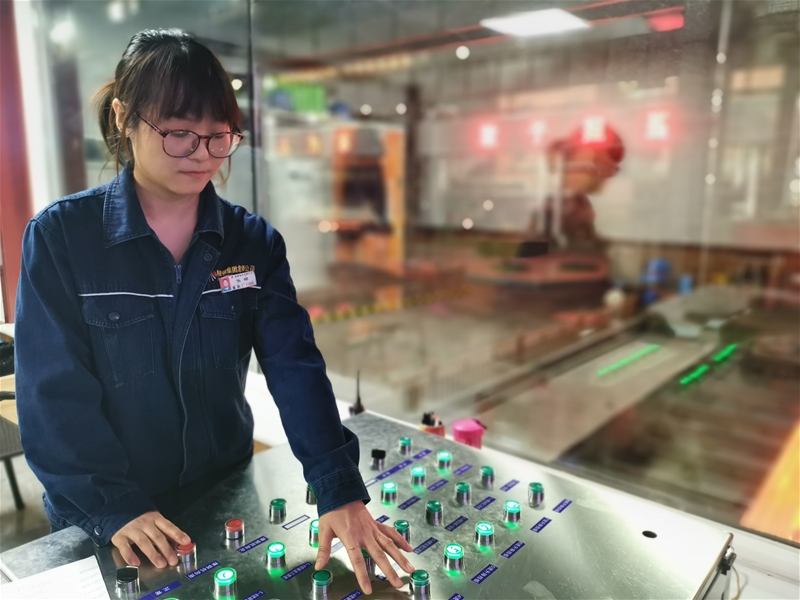 推鋼工是最艱苦的女工崗位之一,該崗位對操作人員的理論知識、操作技能及身體素質(zhì)等方面都有著較高要求。推鋼工是連鑄生產(chǎn)順行最后一道關(guān)卡的把關(guān)人,是把控連鑄生產(chǎn)順行的重要崗位,該崗位對操作人員的體力、耐力、能力都有很高的要求。特別是新區(qū)連鑄機(jī)八機(jī)八流的快節(jié)奏,對推鋼工來說更是一種考驗(yàn)。她們要學(xué)會基本的理論知識及操作要點(diǎn),準(zhǔn)確按動(dòng)操作臺上的按鈕,保證每一根紅坯順利推至冷床,還要正確填寫鋼水爐號、品種以及鋼坯的規(guī)格尺寸記錄。