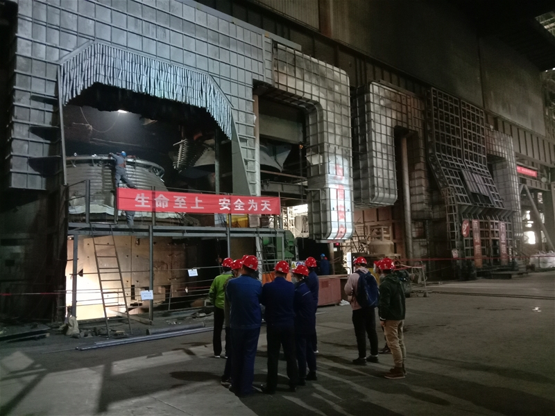 3月6日9:20,拍攝組在漢鋼公司煉鋼廠1#轉(zhuǎn)爐砌爐檢修現(xiàn)場取景。