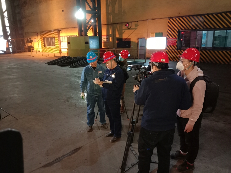 3月13日13:21,拍攝組在龍鋼公司煉鐵廠5#高爐進(jìn)行專訪拍攝。