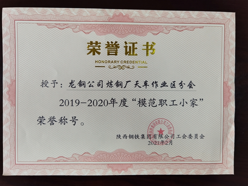 煉鋼廠工會榮獲“模范職工之家”榮譽稱號