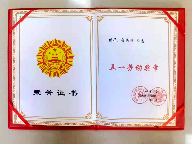 4月29日,韓城市召開慶祝“五一”國(guó)際勞動(dòng)節(jié)暨先進(jìn)表彰大會(huì),公司賀海偉同志榮獲韓城市“五一勞動(dòng)獎(jiǎng)?wù)?rdquo;榮譽(yù)稱號(hào),并現(xiàn)場(chǎng)發(fā)言。