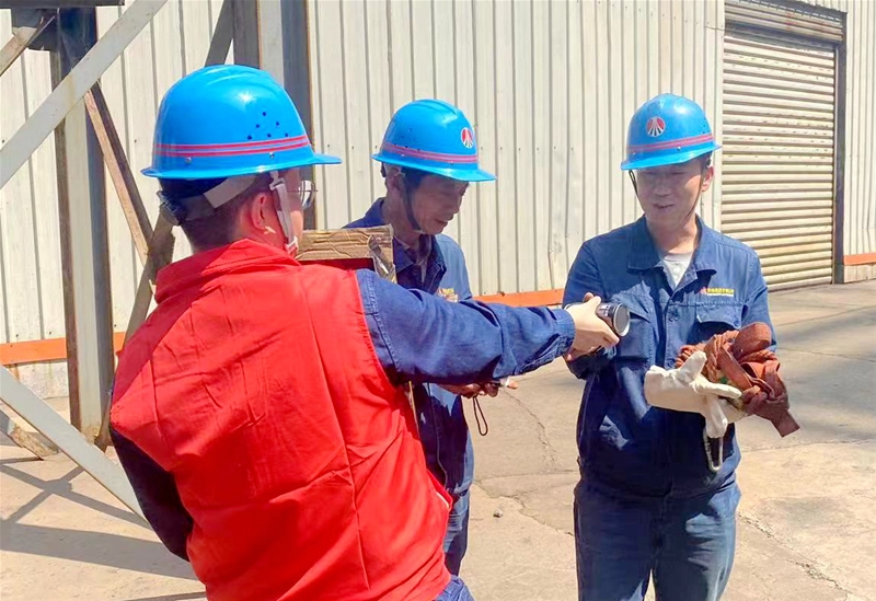 在檢修現(xiàn)場,有這樣一支紅色愛心服務(wù)隊,他們是由平均年齡35歲的青年志愿者組成。他們主動請纓,為檢修現(xiàn)場參檢人員夏檢送清涼,一起戰(zhàn)高溫、斗酷暑。他們抱著防暑降溫飲品,登上20多米高爐平臺上,在送清涼的同時,還時不時提醒參檢人員注意現(xiàn)場安全。“這么熱的天氣,大家干完活休息一下,我們這里為大家準備了補充能量的飲品和飲用水。”青年志愿者王丹丹將一瓶瓶降溫飲品遞到參檢人員手里。“大家作業(yè)前把藿香正氣水喝上,以防中暑。”“上下臺階一定要注意腳下……”從這些溫馨的提示話語中,盡顯滿滿的關(guān)愛之情。