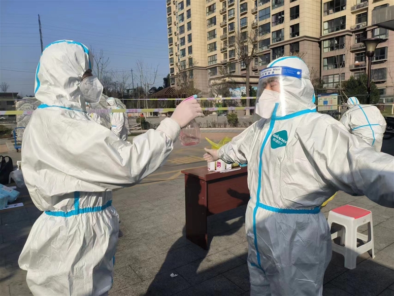 圖四:同晨妮:我的職責是早上6:00開始將核酸管的條碼貼好,做好核酸檢測前準備工作;6:30開始協助醫(yī)護人員做核酸,維護隊伍秩序;10:30核酸結束后,收拾清理核酸垃圾,將警戒帶及桌凳轉移到庫房,核酸檢測完對接收的隔離區(qū)域的物品及物資進行分類消殺和轉移,并幫助隔離住戶購買天然氣等,配合隔離區(qū)域做好防護工作。