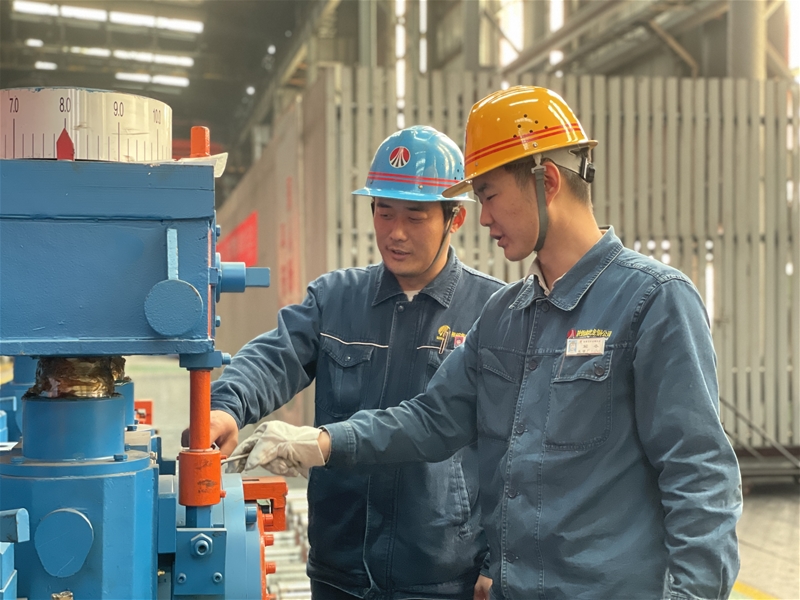 近期,員工反映棒三軋機(jī)壓下連接裝置容易出現(xiàn)銹蝕狀況,導(dǎo)致壓下螺栓緊固后,軋機(jī)傳動(dòng)端上輥軸承座與軋輥配合間隙小,容易造成軋機(jī)上輥密封與軋輥內(nèi)套摩擦燒損現(xiàn)場(chǎng),影響生產(chǎn)。解冬見狀,思量著“現(xiàn)在公司形勢(shì)這么嚴(yán)峻,購買一批備件又是一大筆開銷,不如自制一批備件先解決燃眉之急。”他一邊說,一邊到現(xiàn)場(chǎng)尋找廢舊備件進(jìn)行測(cè)量。經(jīng)過一番研究后,他設(shè)計(jì)好圖紙,就地取材收集厚壁鋼管,與機(jī)加工確定加工方案、工藝要求后,立即制作起來。鉆孔、打磨、焊接、車削,一套程序下來,一批壓下連接裝置制作成功。經(jīng)試用,自制的壓下連接裝置不僅符合要求,而且有效解決了軋機(jī)傳動(dòng)端密封燒損現(xiàn)象,提高了小時(shí)過鋼量,年節(jié)約備件費(fèi)用12萬元。