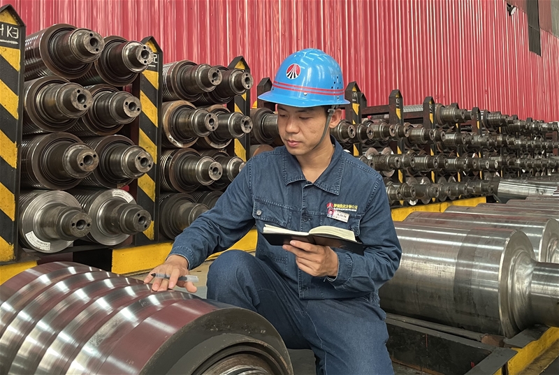 面對理論知識和業(yè)務(wù)技能的不足,他沒有氣餒,給自己定下目標(biāo),從最基礎(chǔ)的軋制原理跟工藝流程學(xué)起。為打牢理論基礎(chǔ),他利用工作間隙自學(xué)業(yè)務(wù)書籍,抓住每一次換輥機(jī)會,比對總結(jié)設(shè)備狀態(tài),跟班向老師傅們學(xué)習(xí)備輥、調(diào)整輥縫及軋輥位置的“獨(dú)門絕技”,手套磨破了一副又一副,扳手轉(zhuǎn)動了一次又一次,終于練就了“眼、心、手”合一的軋制技能,并根據(jù)生產(chǎn)實(shí)際,歸納整理出一套溫度控制、軋制速度、軋機(jī)負(fù)荷等重要參數(shù)的“錦囊冊”。他在勤學(xué)苦練中成就了自我。