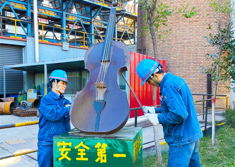 “這把大提琴是班長帶著我們打造的!這手藝也練了有好幾年。”職工小張自豪地說道。