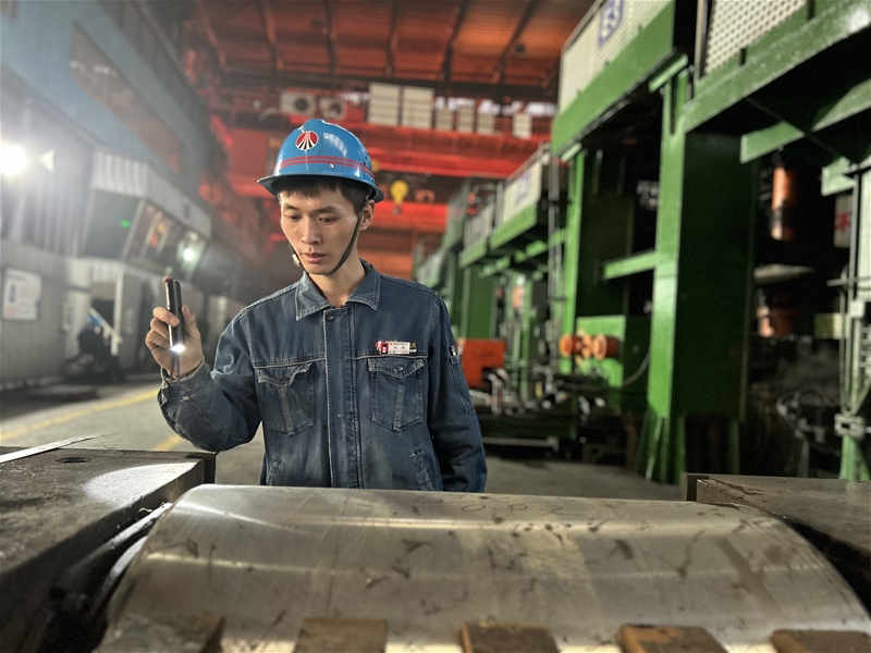 他不僅具備扎實(shí)的專業(yè)能力,還勇于擔(dān)當(dāng)。檢修期間,他堅(jiān)守現(xiàn)場,化身兼職安全員,不論是嚴(yán)寒,在空曠寒冷的板鏈作業(yè)現(xiàn)場,還是酷暑,在昏暗悶熱的加熱爐清渣作業(yè),只要作業(yè)不完成,他就堅(jiān)守在現(xiàn)場,用心用情為安全檢修“保駕護(hù)航”。正是因?yàn)樗恼J(rèn)真負(fù)責(zé),多次被評(píng)為板帶作業(yè)區(qū)“優(yōu)秀監(jiān)護(hù)人”。除此之外,他還不斷鉆研,積極參與軋線導(dǎo)衛(wèi)、換輥小車等改造項(xiàng)目,中廢、成材率等指標(biāo)攻關(guān)工作,成功解決了多個(gè)技術(shù)難題,為生產(chǎn)穩(wěn)定順行貢獻(xiàn)了青春力量。