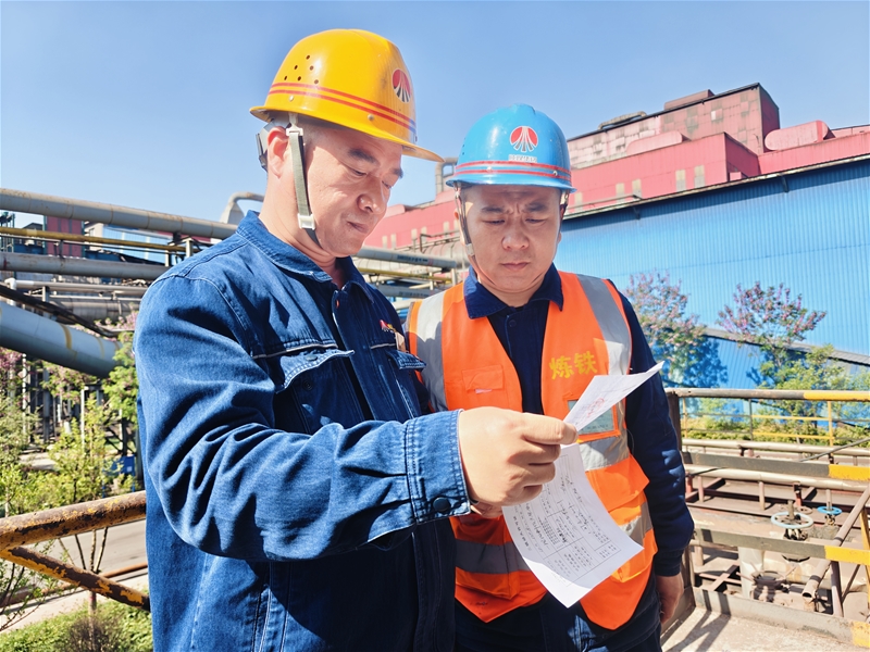 還未完全冷卻的爐膛就像一個(gè)大烤爐。賈增武佩戴好煤氣報(bào)警器,對爐內(nèi)煤氣濃度進(jìn)行檢測達(dá)標(biāo)后,拿起制作好的工具,直接進(jìn)入爐膛內(nèi),找準(zhǔn)位置,上下發(fā)力,頑固的結(jié)瘤一塊塊被敲落下來。同樣的動(dòng)作,在不停地反復(fù)進(jìn)行著,看似簡單,其實(shí)要消耗大量體力。不一會(huì)兒,豆瓣大的汗水順著他的臉頰滴落在尚有余溫的臺(tái)車上被瞬間蒸發(fā)……面對高溫他們迎難而上、緊密協(xié)作,最終提前兩個(gè)小時(shí)完成燒嘴清理工作。