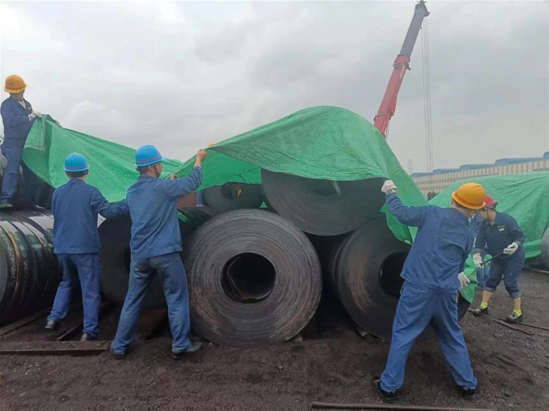 夏季雨天較多,為規(guī)范板帶外庫鋼材覆蓋,確保鋼材有效防護。每逢異常天氣,需要對板帶外庫鋼材進行篷布覆蓋。由于崗位人員緊張,加之板帶外庫篷布覆蓋工作量較大。為精準、高效、快速地完成覆蓋工作,該工序發(fā)出“提升能力、轉變作風、狠抓落實”的號召,機關人員轉作風、強擔當,從實際出發(fā),參與板帶外庫鋼材覆蓋工作,解決實際問題。同時,為提高服務效能,每年酷暑時期,主辦以上管理人員深入生產一線進行挑短尺、線材剪頭尾以及板帶牽頭作業(yè)義務勞動。開展一線“送清涼”活動,為職工送去防暑降溫物品,把關心和關愛送到每位職工心中,以務實的作風為職工辦實事,拉近與職工的距離,提高服務水平,提升工作質效。