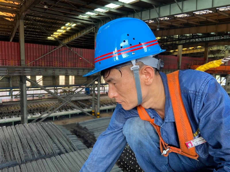 走進(jìn)軋鋼生產(chǎn)線,一股熱浪迎面而來。距離軋線20米的高空,剛剛完成車輛點(diǎn)檢的趙正正駕駛天車忙碌地進(jìn)行鋼坯入庫工作,起吊、穩(wěn)鉤、下落動(dòng)作一氣呵成,嫻熟而輕巧,在進(jìn)行鋼坯碼垛作業(yè)時(shí),他不到10分鐘便完成一車原料的吊運(yùn)擺放。每次鋼坯碼垛,他都提前測(cè)算出前后左右距離,精確放置,將軍營中疊“豆腐塊”的嚴(yán)謹(jǐn)精神傳承到崗位工作中。經(jīng)他擺放的鋼坯垛位總是方方正正、橫平豎直,令人眼前一亮。炙烤的環(huán)境,絲毫沒有影響到他。趙正沉著冷靜,爭(zhēng)分奪秒對(duì)車輛進(jìn)行點(diǎn)檢、維護(hù),往往調(diào)整一個(gè)制動(dòng)器下來,就已經(jīng)汗流浹背。而他認(rèn)真堅(jiān)定的目光,是對(duì)崗位最滾燙的熱愛。