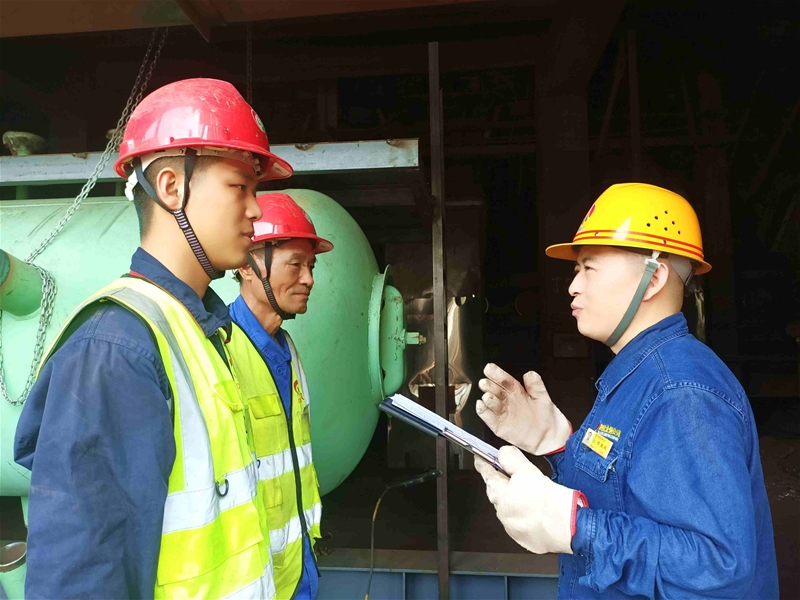 265㎡燒結(jié)機(jī)檢修現(xiàn)場(chǎng),滾滾熱浪迎面襲來,一上午的區(qū)域隱患排查,吉夏龍后背的工服早已濕透。“這張派工單上的安全措施與現(xiàn)場(chǎng)實(shí)際作業(yè)危險(xiǎn)因素怎么不相符?”經(jīng)過他再三確認(rèn),立即叫停了此項(xiàng)違規(guī)作業(yè),要求重新辨識(shí)現(xiàn)場(chǎng)危險(xiǎn)因素,并制定相應(yīng)安全措施。“安全無(wú)小事,要保證每一個(gè)細(xì)節(jié)。一個(gè)小失誤都很可能造成大隱患!”吉夏龍滿臉嚴(yán)肅地對(duì)外協(xié)人員講道。隨后,他還針對(duì)外協(xié)及現(xiàn)場(chǎng)施工作業(yè)過程進(jìn)行了復(fù)盤,讓安全標(biāo)準(zhǔn)化作業(yè)管控為職工生命安全筑起一道堅(jiān)實(shí)屏障。