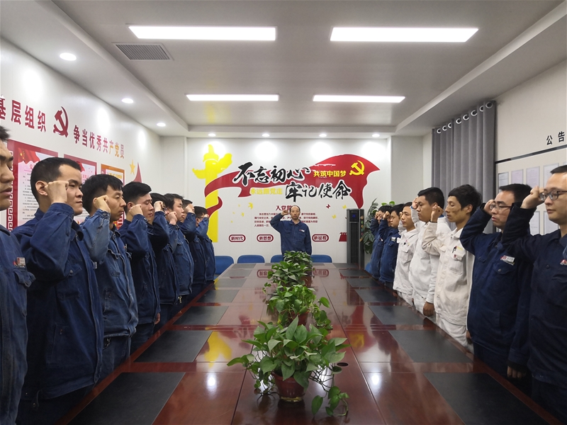 圖2:安全是忠于發(fā)自肺腑的拳拳誓言!450㎡燒結(jié)甲班員工班前進(jìn)行安全宣誓。