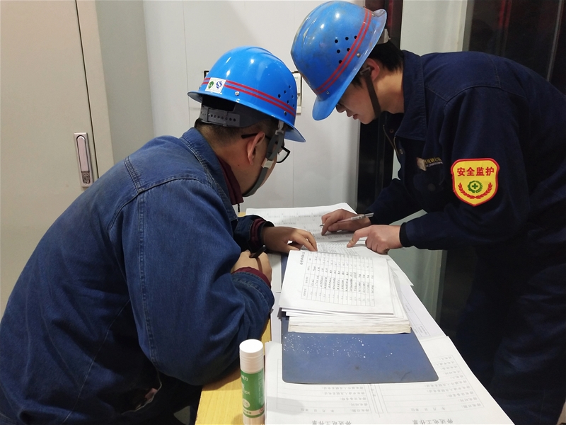 圖4:安全是互聯(lián)互保把工友放在心上!檢修監(jiān)護(hù)人員正在辦理作業(yè)票。