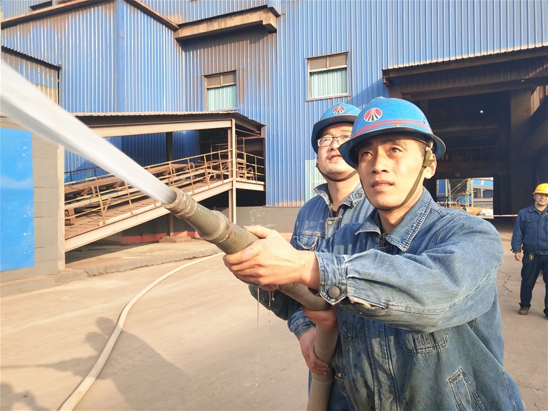 圖6:安全是把每次演練都當(dāng)作實(shí)戰(zhàn)!450㎡燒結(jié)成品班長(zhǎng)劉飛正在進(jìn)行消防演練。