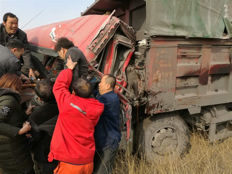 2017年11月的一天,他和同事出差前往山西省河津市對高鈣灰進行市場調(diào)研。返回途中,他發(fā)現(xiàn)兩輛車因交通事故導致司機被擠壓在駕駛室內(nèi),一人已經(jīng)昏迷,另一人雙腿無法動彈,頭部正在流血。他當機立斷,喊了一嗓子“停車,趕快幫忙救人!”