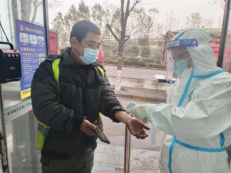筆者上夜班見(jiàn)到他時(shí),他依舊笑臉相迎不厭其煩地在測(cè)溫,查驗(yàn)健康碼和核酸檢測(cè)結(jié)果。有人質(zhì)疑他“不嫌麻煩”,他幽默風(fēng)趣地笑著解釋?zhuān)?ldquo;疫情多變,無(wú)癥狀感染者人數(shù)居多,咱們千萬(wàn)不能掉以輕心,這樣做不麻煩,而是為了大家都能安心在廠、安全在崗。”說(shuō)完,他繼續(xù)負(fù)責(zé)測(cè)溫、查碼,并不知疲倦地巡查北門(mén)初檢和自動(dòng)采樣站揭篷布兩個(gè)重點(diǎn)崗位。