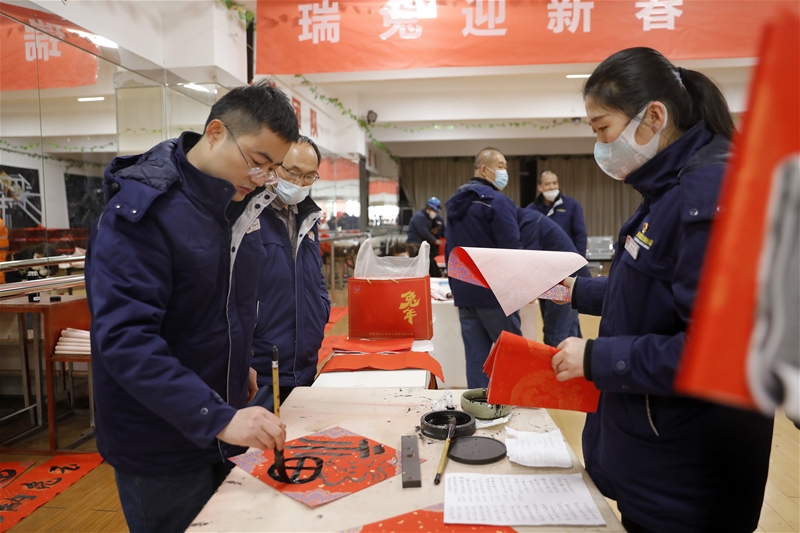 職工把“福”帶回家,感受到“春聯(lián)在手上、祝福在字里、歡樂(lè)在心中”的暖意,更感受到企業(yè)大家庭的溫暖。大家紛紛表示,在新的一年將努力工作,以更加飽滿的激情,迎接新的挑戰(zhàn),在充滿榮光和夢(mèng)想的新征程上大展宏“兔”、踔厲奮發(fā)、勇毅前行,創(chuàng)造更加輝煌的業(yè)績(jī)。據(jù)悉,此次活動(dòng)共為廣大干部職工書(shū)寫(xiě)對(duì)聯(lián)1600余副,“福”字300多個(gè)。