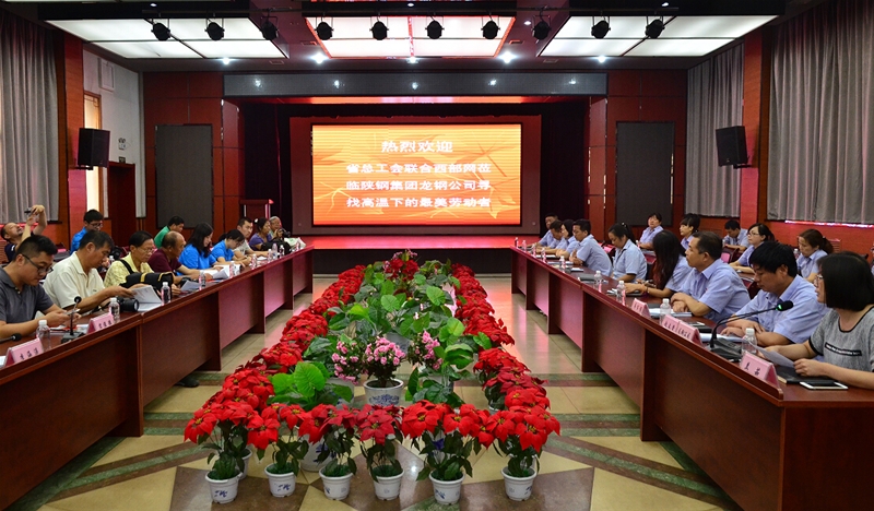 “尋找高溫下的最美勞動者”采風(fēng)組一行首先在公司三樓會議室召開了座談會,陜鋼集團(tuán)女工委主任、工會辦副主任蘭茹、公司工會主席趙春棠分別就陜鋼集團(tuán)和龍鋼公司的企業(yè)概況、生產(chǎn)組織、工會工作基本情況作了簡要介紹。西部網(wǎng)記者就相關(guān)問題與參會職工代表進(jìn)行了交流。