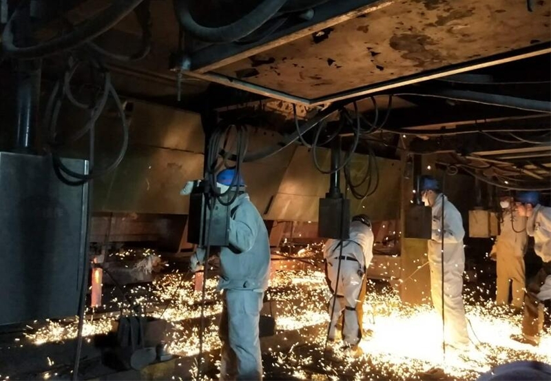 最后一站是攝影記者們向往已久的煉鋼。走進(jìn)煉鋼新區(qū),“打造中國(guó)最具競(jìng)爭(zhēng)力的高端鋼鐵材料服務(wù)商,建成美麗幸福新陜鋼”的巨幅宣傳牌不禁讓人精神一振。當(dāng)走過(guò)爐前的“文化長(zhǎng)廊”后,加廢鋼的斗子懸在轉(zhuǎn)爐上空,操作室內(nèi),爐長(zhǎng)張社寧仔細(xì)地觀察著各個(gè)下料成分、重量的數(shù)字變化,看到我們來(lái)熱情地打招呼。來(lái)到連鑄機(jī)平臺(tái),一名爐前工喊著“讓一下,小心燙”,一邊用厚厚的白手套挑著鋼釬,經(jīng)詢(xún)問(wèn)原來(lái)是剛換下來(lái)的中包結(jié)晶器套管。中包工們一字排開(kāi)站立在中包各流口前,操作著中包拉鋼設(shè)備,看著火紅的鋼水聽(tīng)話地流進(jìn)結(jié)晶器口,前邊是鋼水的炙烤,后邊吹風(fēng)機(jī)呼呼地吹著,鐵打的人也會(huì)因?yàn)?小時(shí)的長(zhǎng)時(shí)間站立而困乏顫抖,他們的毅力難以想象。“爐內(nèi)煉鋼,爐外練人”的傳說(shuō)真是再現(xiàn)了這種情景。