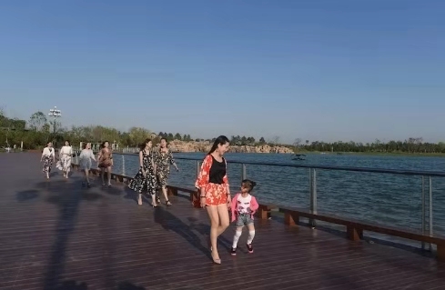 湖堤上,有幼兒牽著媽媽的手,姍姍學步;有情侶手拉著手,走著笑著;有年長者推著輪椅,載著老伴,緩緩前行……湖邊小廣場上,忽聽得鼓樂聲響起。那是來湖邊休閑的市民和游客們正在欣賞著自樂班的秦腔表演,動情處,掌聲雷動,喝彩聲不斷。恬靜而不失動感,靈秀中透出質(zhì)樸,顯現(xiàn)了北方地域的獨特景致,動靜交融,渾然一體。