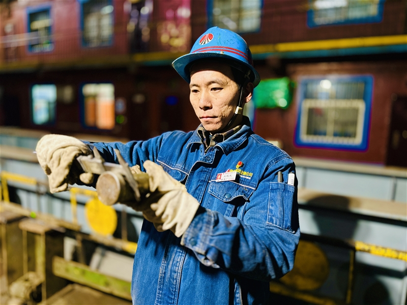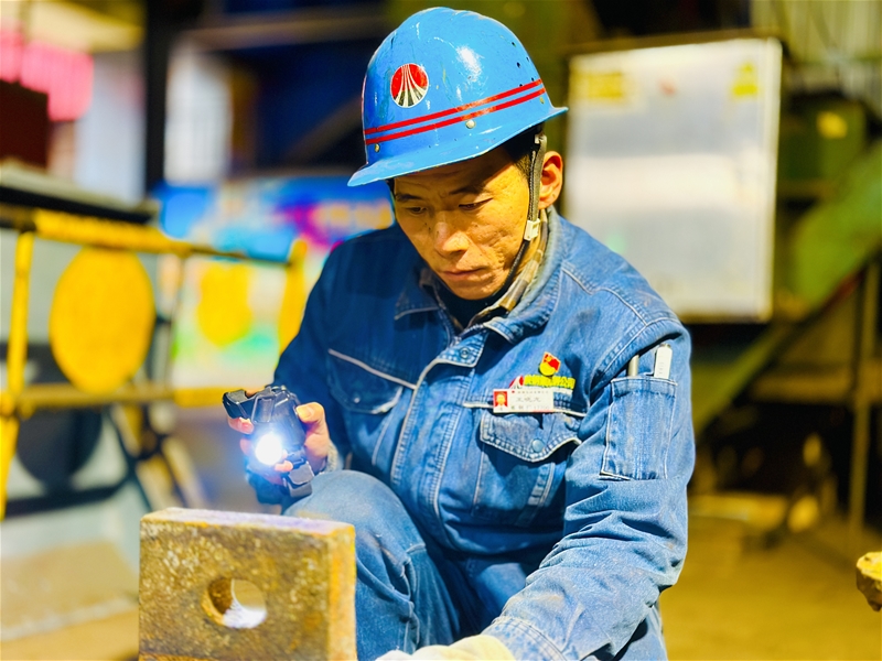 狹小且悶熱的設備縫隙里,維修工騰轉(zhuǎn)挪移、身形靈活。他們用割槍割除廢舊螺絲、對拉矯機冷鋼清理、對水油路進行疏通。現(xiàn)場48度的高溫下,一抹抹“勇士藍”在汗水中與時間賽跑,一頭汗水、滿臉笑容,是他們的真實寫照。