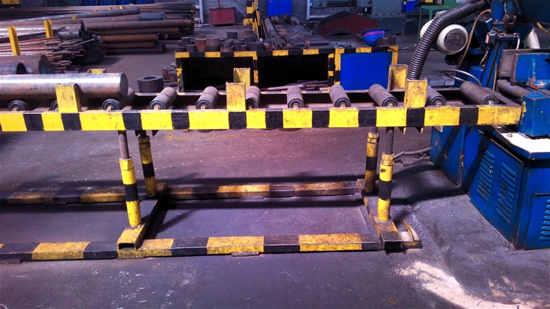 項(xiàng)目簡(jiǎn)介:我單位現(xiàn)有帶鋸床GB4032一臺(tái),隨廠附件小車料架一個(gè),因小車料架設(shè)計(jì)缺陷,與地面接觸點(diǎn)較小有時(shí)在送料過程中導(dǎo)致小車倒塌,從而造成安全隱患。針對(duì)此安全隱患,利用廢鋼槽,回收的舊小托輥,并自制調(diào)整螺距,通過組焊,并在料架邊設(shè)立擋板,試制成功,并投入使用。改進(jìn)后,使用狀況良好。原來鋸床使用機(jī)床自帶小車料架,吊裝圓鋼時(shí),需要兩人配合才能完成而且存在安全隱患。改進(jìn)后吊裝上下圓鋼僅需1人便能完成操作。按每天鋸床節(jié)省1人勞動(dòng)力計(jì)算,每天每人8小時(shí)工時(shí)費(fèi)為200元計(jì)算,每年可節(jié)約人工費(fèi)1.32萬元。