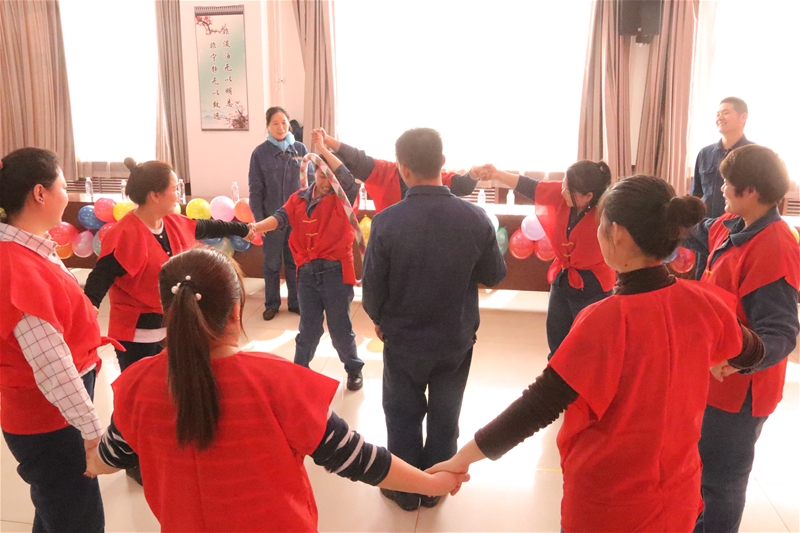 下午兩點(diǎn),來自各單位的60余名女工代表歡聚一堂,共同慶祝自己的節(jié)日。此次團(tuán)隊(duì)游藝活動共有五個(gè)參賽隊(duì),設(shè)置“黃金拍檔、穿越呼啦圈、鐵人接力、助力火車”四個(gè)項(xiàng)目。活動過程中,參賽隊(duì)員個(gè)個(gè)精神抖擻、奮勇爭先,盡情享受運(yùn)動的快樂,充分展現(xiàn)了“半邊天”的智慧和奮發(fā)向上的干勁。由女職工自導(dǎo)自演的手語舞《讓愛傳出去》將活動推向了高潮。